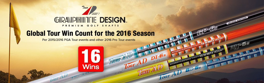 With 26 years of designing and manufacturing premium graphite golf shafts, Graphite Design shafts can be seen in play by the best professional players on all tours worldwide. Validating the company’s “Tour AD” logo, all of Graphite Design’s Tour-proven shafts specifically promote “Accuracy and Distance“. On Tour, Graphite Design shafts recorded 41 Global tournament victories in 2015 and have helped numerous golf professionals earn well over 100 victories and millions of dollars in prize money since inception. Graphite Design continues to be the most dominant shaft brand on the Japanese JGTO Professional Tour for the past thirteen years.
