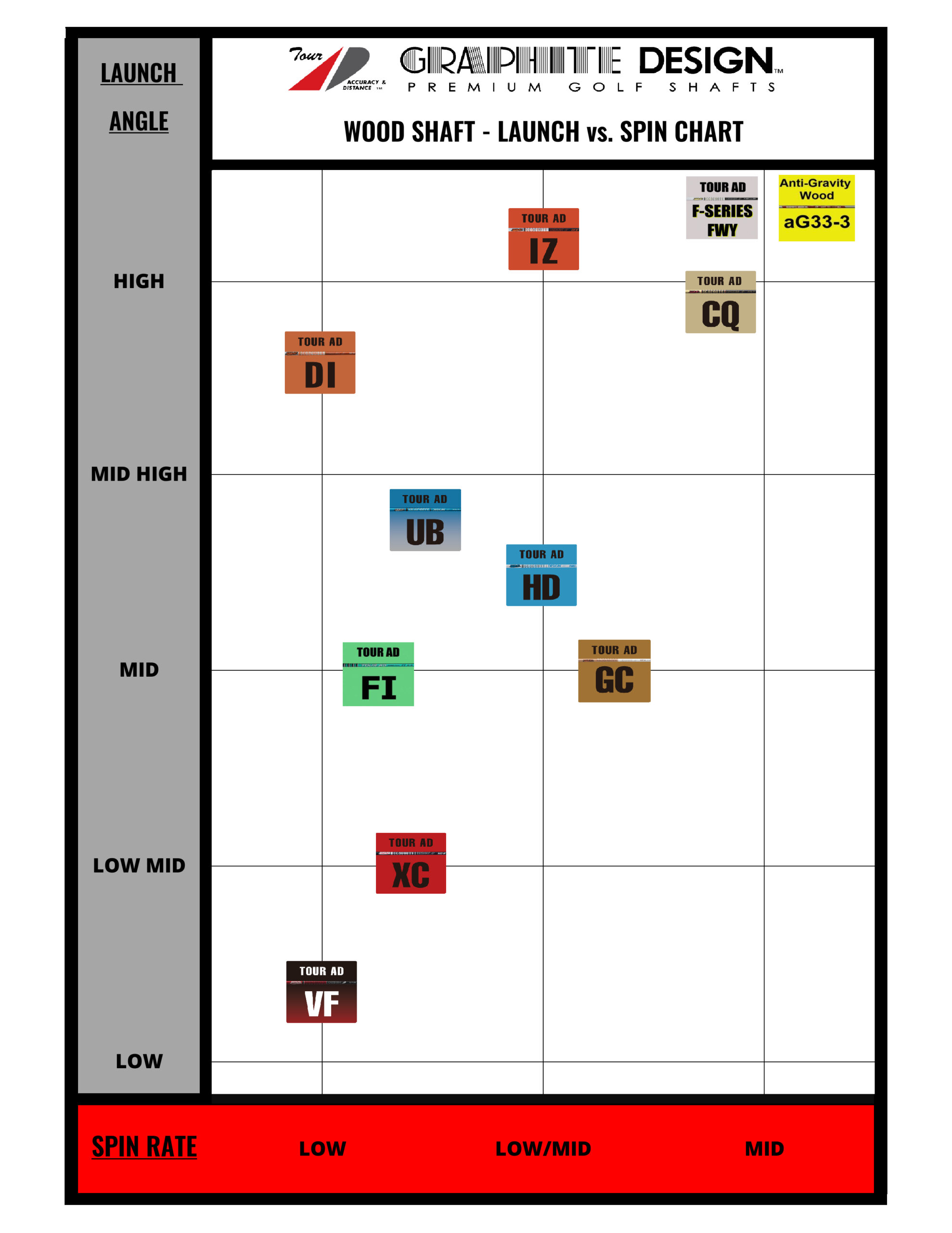 | Anti Gravity aG33-3 SR | aG33-3 SR | Stiff Regular | 46″ | 40.5g | .335″ | 3.0″ | .594″ | 7.5° | LOW | HIGH | MID |