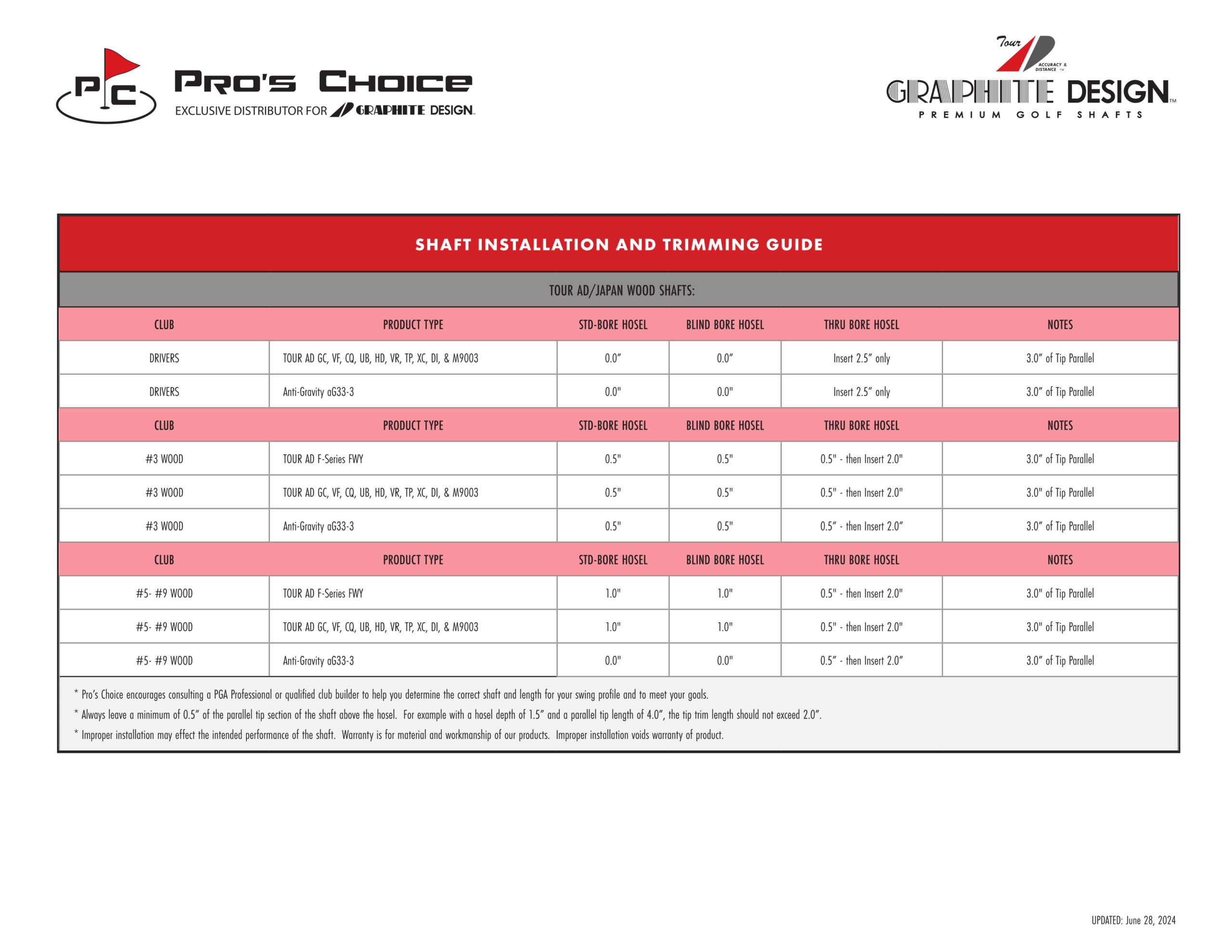 Trimming Guide, Fitting Guide, Shaft Comparisons and Catalog